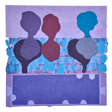 Mono & relief print on paper, framed, 16x16cm, Private Collection